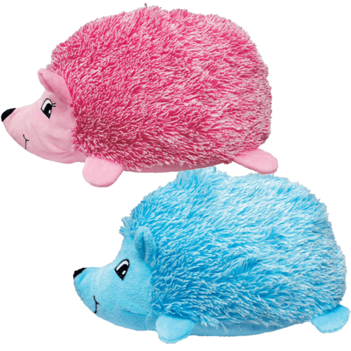 The soft plush and cuddly body of the KONG Comfort Hedgehog is ideal for cuddling and gentle play - no spikes, just cute. With a squeaker that stim...