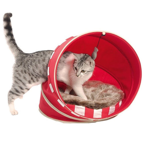 A striking red cat bed that can also fold, so it is very convenient if you travel with your cat. Your cat may also climb in it through an opening ...