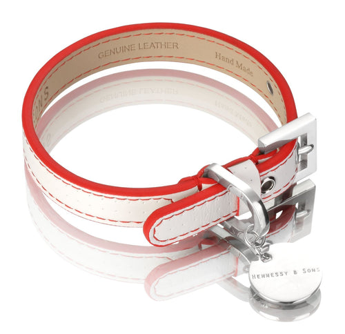 Hand Made Dog Collar with resistant Italian Saffiano Leather and French Alsavel Lining. All metal components are in high quality 316L Stainless Ste...