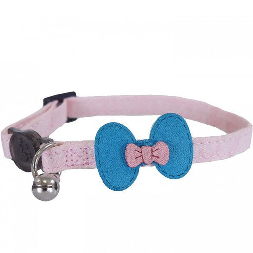 This designer cat collar from the Rosewood range is a quality, fashionable collar that features a pink denim design with a suede, teal and pink bow...