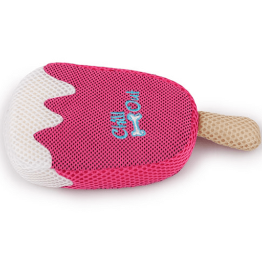 After being soaked in water this toy will retain water and dispense it as your dog is playing with it. Fun summer fun strawberry ice cream design. ...