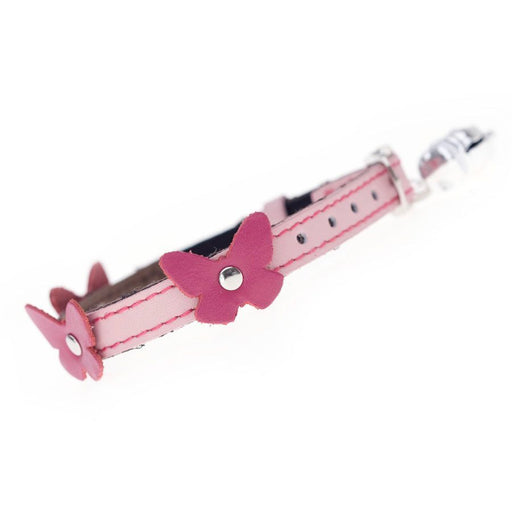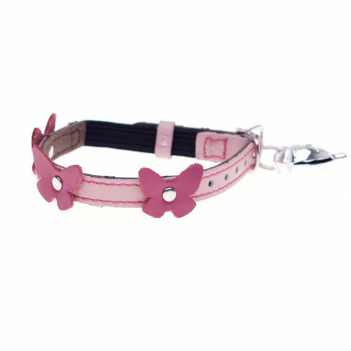 Pink real leather cat collar with cute butterfly appliqués. Each collar is fitted with fish shape cat bell and lined with super soft felt. For a ...