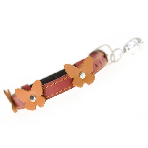 Red real leather cat collar with cute girly butterfly appliqué. Each collar is fitted with fish shape cat bell and lined with super soft felt. F...