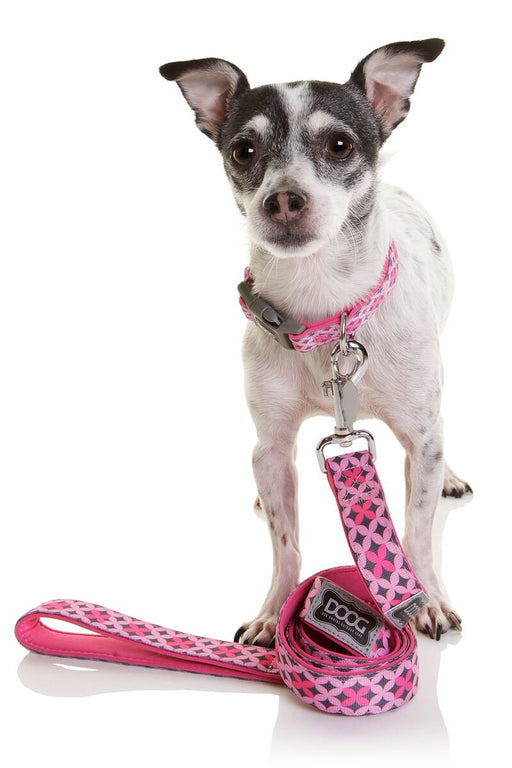 Diese Hundeleine aus praktischem, sportlichem und weichem Neopren mit geometrischem Muster in Rosa und Grau sieht nicht nur super stylisch aus, son...