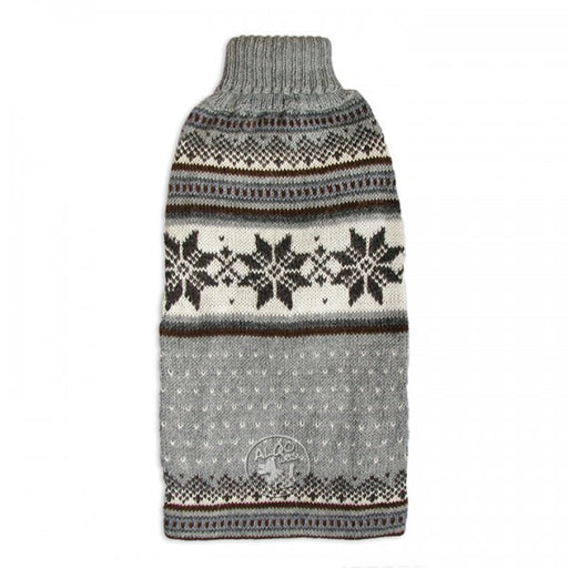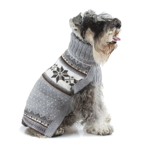 Holen Sie sich den alpinen Glamour! Inspiriert von klassischen nordischen Mustern, hat dieser graue Hundepullover mit Rollkragen und festlichen Sch...