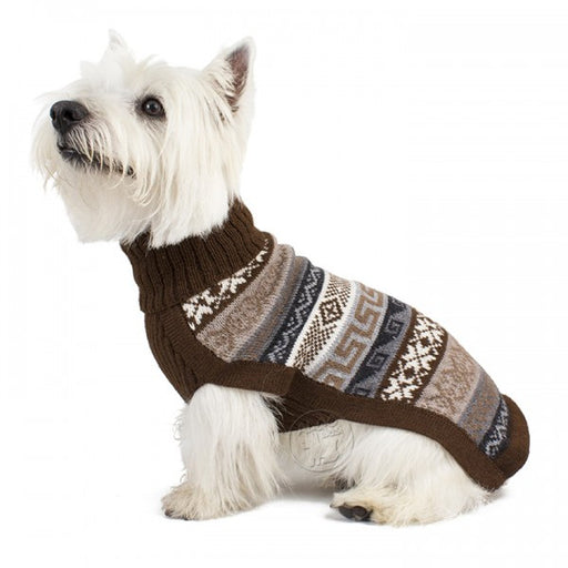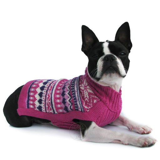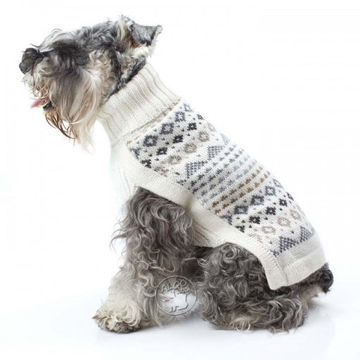 Mit diesem nordisch gemusterten und himmlisch weichen gestrickten Hundepullover aus einer Alpakamischung kann Ihr Hund jetzt die Winterkälte absch...