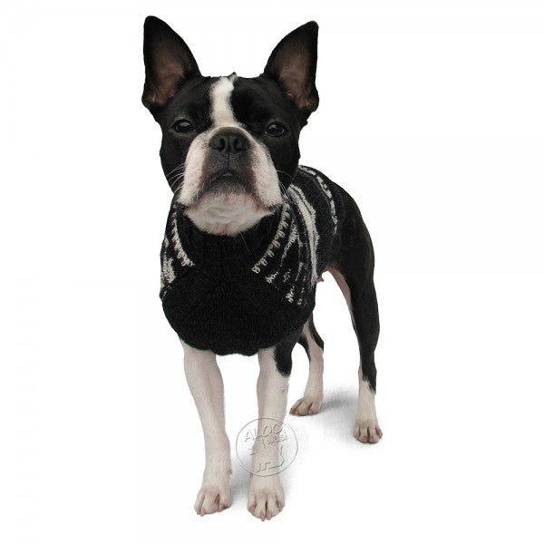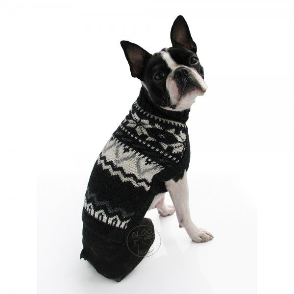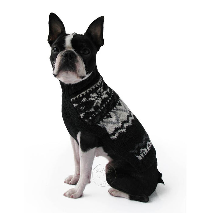 Mit abwechselnden geometrischen Mustern und nordischen Designs wird dieser schwarz-weiße, leichte Rollkragen-Hundepullover Ihren Vierbeiner umwerfend stilvoll halten.