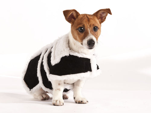 Le manteau pour chien Sherpa est fait de cuir suédé véritable avec une doublure en fausse fourrure pour garder le chien au chaud et confortable pa...