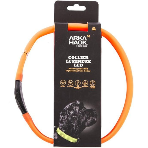 Préparez votre soirée en toute sécurité ! Avec les colliers lumineux Arka Haok, vous et votre chien ne passerez pas inaperçus ! Le Collier USB Ark...