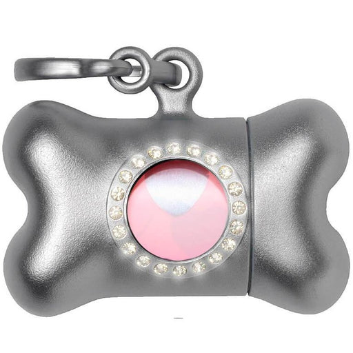 Un magnifique porte-sac à caca design d'Italie ! Il s'agit d'un distributeur de sacs à caca de couleur métal en forme d'os avec des cristaux desig...