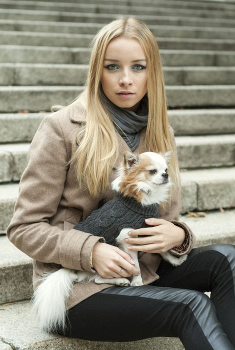 Ce chandail à col roulé classique en tricot torsadé gardera votre chien bien au chaud lors des promenades hivernales dans notre col roulé classique. Non contraignant, ce pull élégant est confectionné dans une laine d'agneau de haute qualité agréable au toucher.