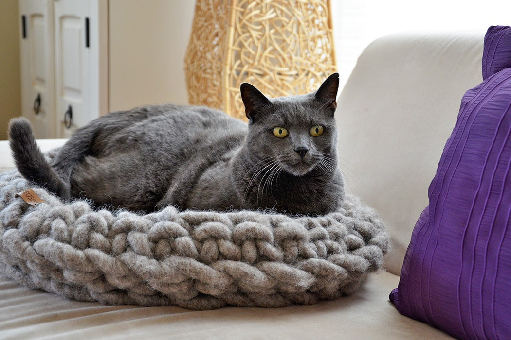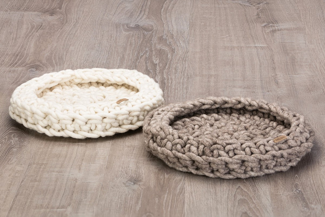 Nos nobles paniers pour chats sont crochetés à la main à partir de laine de mouton feutrée. Les articles en laine uniques embellissent non seulement chaque salon, mais grâce à la forme câline, les chats et les petits chiens se sentent particulièrement à l'aise dans le lit douillet en matériaux naturels. Pour la production de nos paniers pour chats, nous n'utilisons que de la laine de mouton vierge de haute qualité et non traitée provenant d'un élevage adapté à l'espèce. Afin de conserver la structure naturelle, la laine n'est pas teinte après tonte, mais seulement lavée et peignée, triée par couleur et mélangée entre elles. La laine est anti-salissures et peut être lavée à la main si nécessaire.
