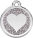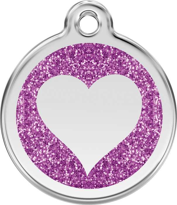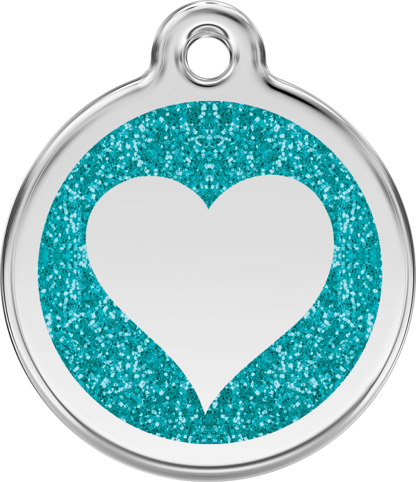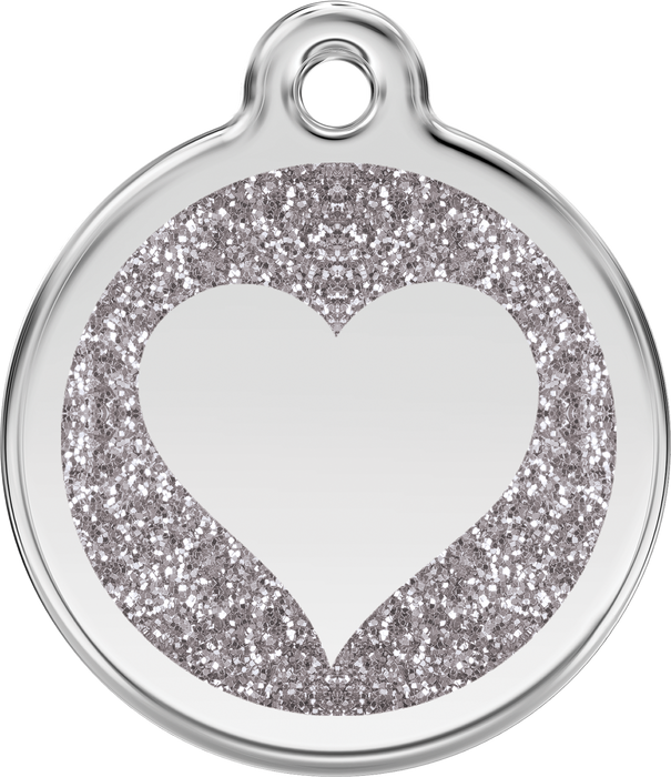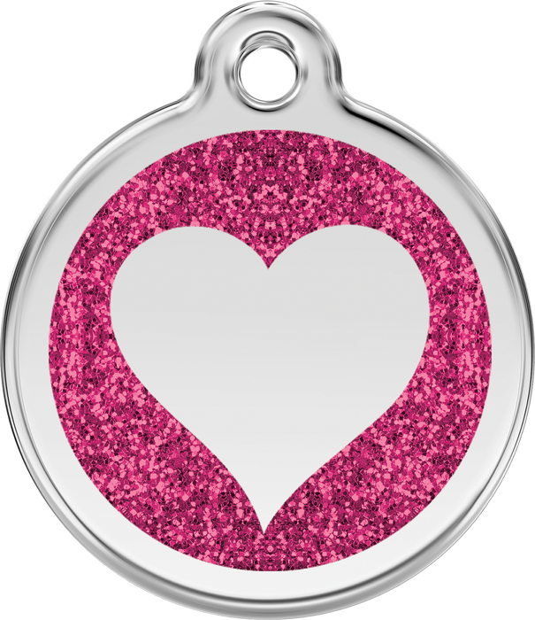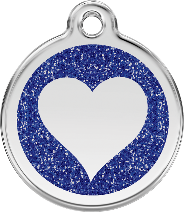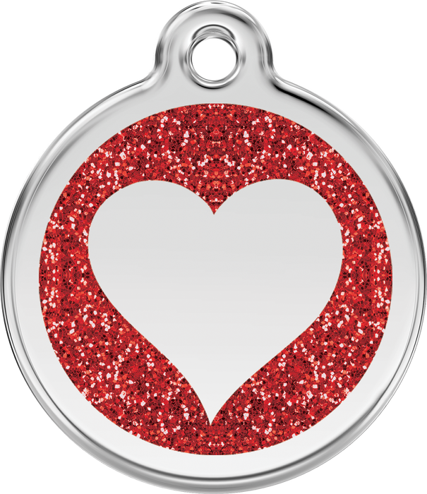 Les plaques d'identité Red Dingo en acier inoxydable avec paillettes sont disponibles en trois tailles :