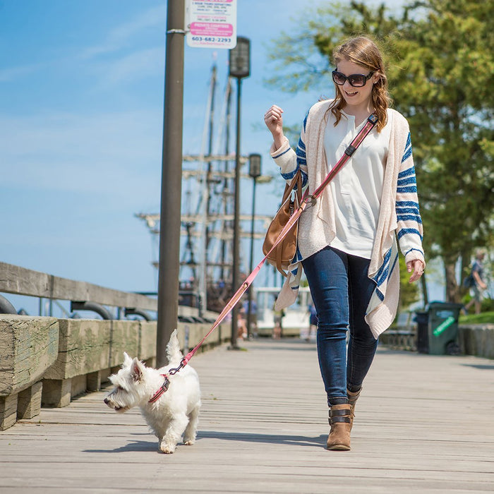 La Quantum Leash est une laisse pour chien primée qui peut être utilisée de six manières différentes. Avec un mousqueton, la laisse peut être facilement commutée entre les six fonctions différentes. La laisse pour chien Quantum peut facilement être raccourcie de 180 cm à une laisse pour chien plus courte de 90 cm. Vous pouvez également attacher la laisse du chien autour de votre taille ou la suspendre à votre épaule pour pouvoir marcher librement avec vos mains. Avec un simple réglage, il est même possible de promener deux chiens en laisse. La poignée coulissante et rembourrée offre confort et soutien pour les 6 styles de transport différents.