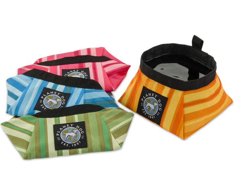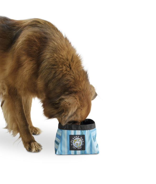 Dogs on the go need their supplies in tow! The On the Go Food and Water Bowl is the perfect traveling companion for our favourite travel companions. It's made from a durable poly-canvas, with watertight PU lining. It pops open for easy access, and sits flat for stability. Keep one in the glove compartment, one in the backpack, and one in the mudroom.